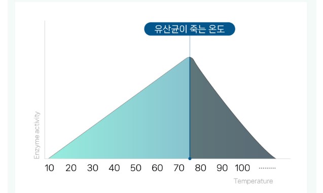 일반적으로 유산균은 75도부터 죽습니다. 정제 가공 시, 100도 이상의 열처리로 인해 유산균이 죽어버리게 됩니다.