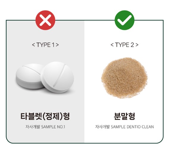 덴티오클린은 유산균은 가공 시 유산균을 100% 보존하고 체내 흡수량을 높이기 위해 안전한 제형인 분말형태로 제조되었습니다.