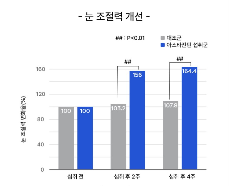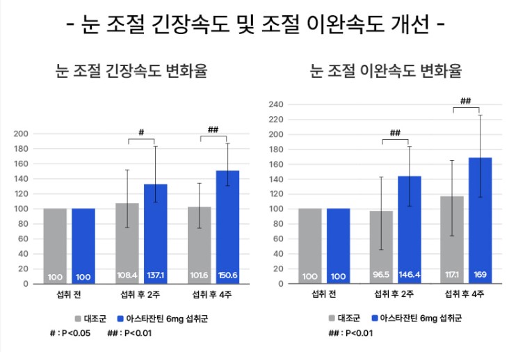 섭취군에서 눈의 조절 긴장속도 및 조절 이완속도 개선되었습니다.