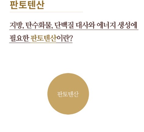 ※ 판토텐산은 우리 몸에서 에너지원으로 변환하는데 도움을 주며, 지방, 탄수화물, 단백질 대사와 에너지원으로 사용될 수 있도록 해줍니다. 판테텐산은 부족한 활력을 채우는데 도움을 줄 수 있습니다.