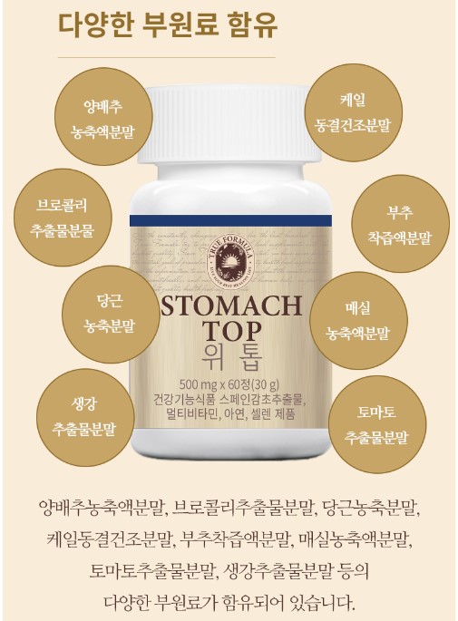 트루포뮬러 위톱은 위 건강을 개선하고 소화 기능을 지원하는데 도움을 줍니다.