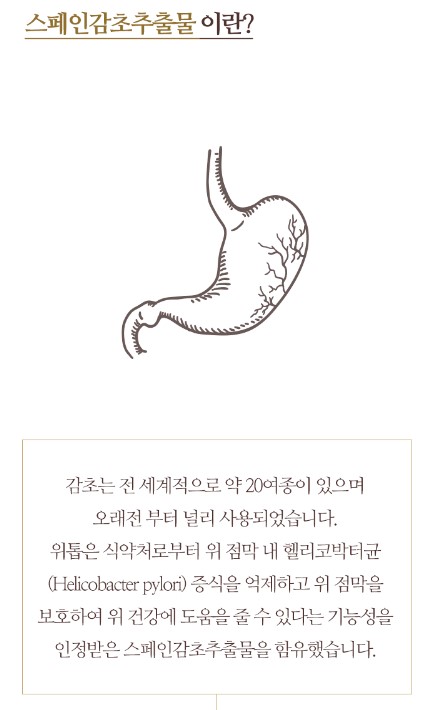 주 핵심인 스페인 감초 추출물은 다양한 건강 효능이 있습니다.