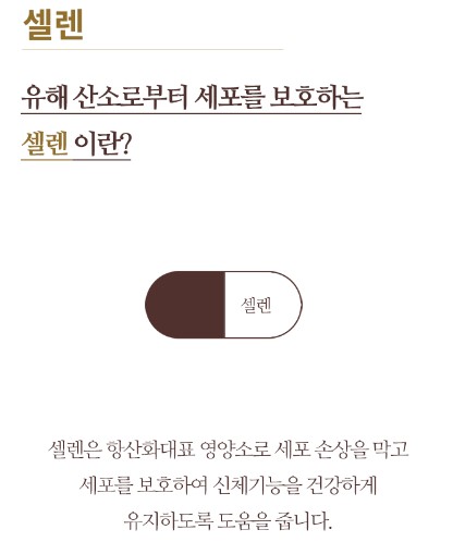 셀레늄은 항상 화 대표 영양소로써 세포 손상을 막고 세포를 보호하여 신체기능을 건강하고 젊게 유지하도록 도움을 줍니다.