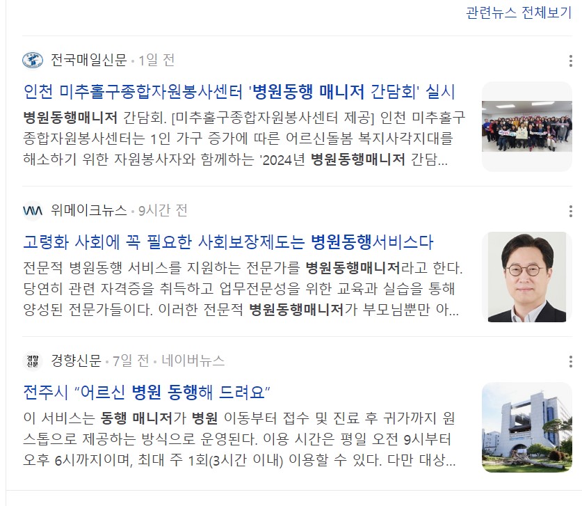 아래 기사들처럼 지자체마다 병원 동행 서비스를 확대하고 있습니다.