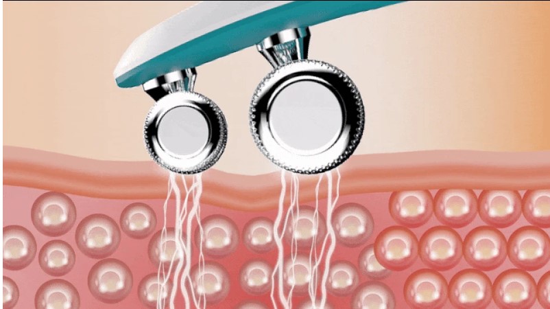 피부 진피층에 EMS 미세전류를 공급해 피부 속 근육을 자극함으로써 피부탄력케어와 얼굴의 부기까지 제거해 주는 효과를 가지고 있습니다.