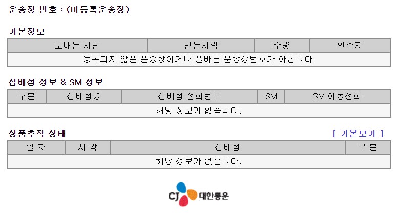 위와 같이 CJ 대한통운 택배 조회 시 운송장 번호를 알면 바로 택배 조회가 가능합니다.